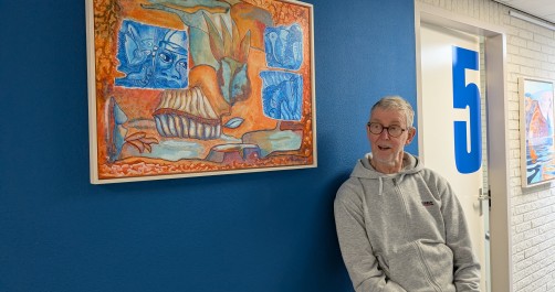 Kortom de kunstenaar nodigt de kijker uit om even stil te staan en zich mee te laten voeren in een wereld waar muziek, natuur en verbeelding samen een moment van rust en plezier creëren. Een kunstwerk dat niet alleen kleur brengt aan de muur, maar ook een glimlach oproept bij iedereen die ernaar kijkt. Loop eens rond in onze praktijk en bekijk de prachtige werken.